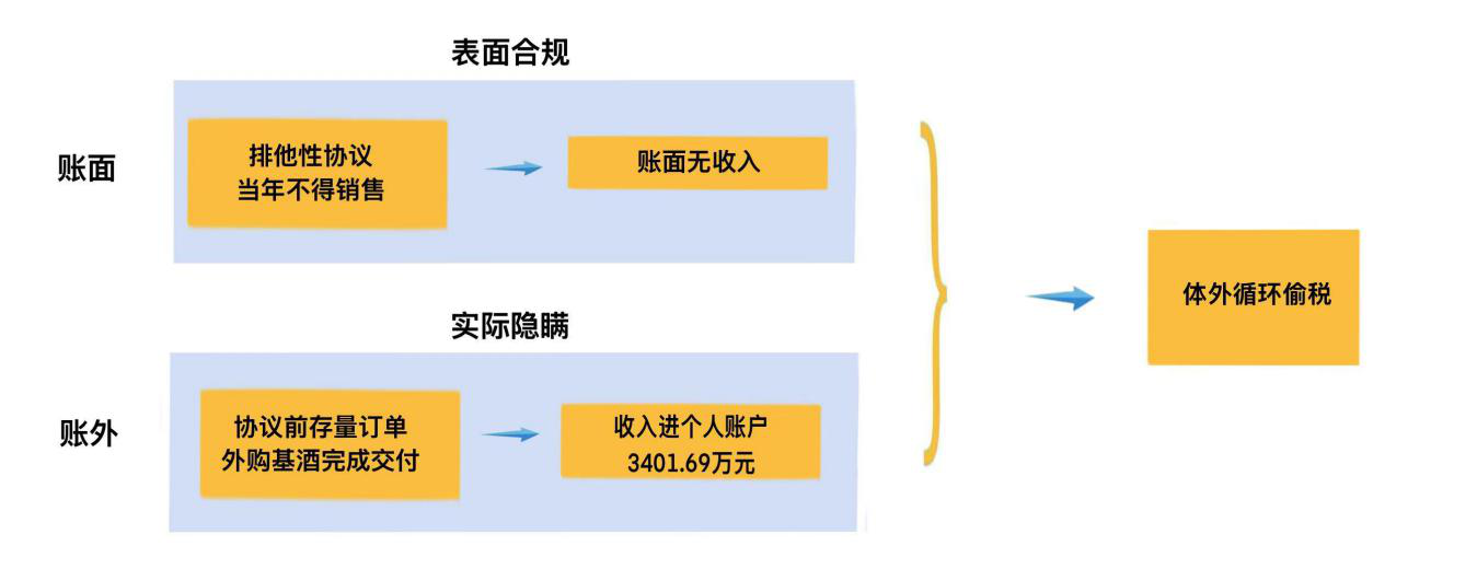 随着检查的深入,企业法定代表人承认,为了履行2021年前签订且已收取定金的存量合同,鹏程酒厂在签订排他性协议后,通过外购基酒和包装材料完成了订单交付,而这些交易产生的销售收入,均未经过企业对公账户。
